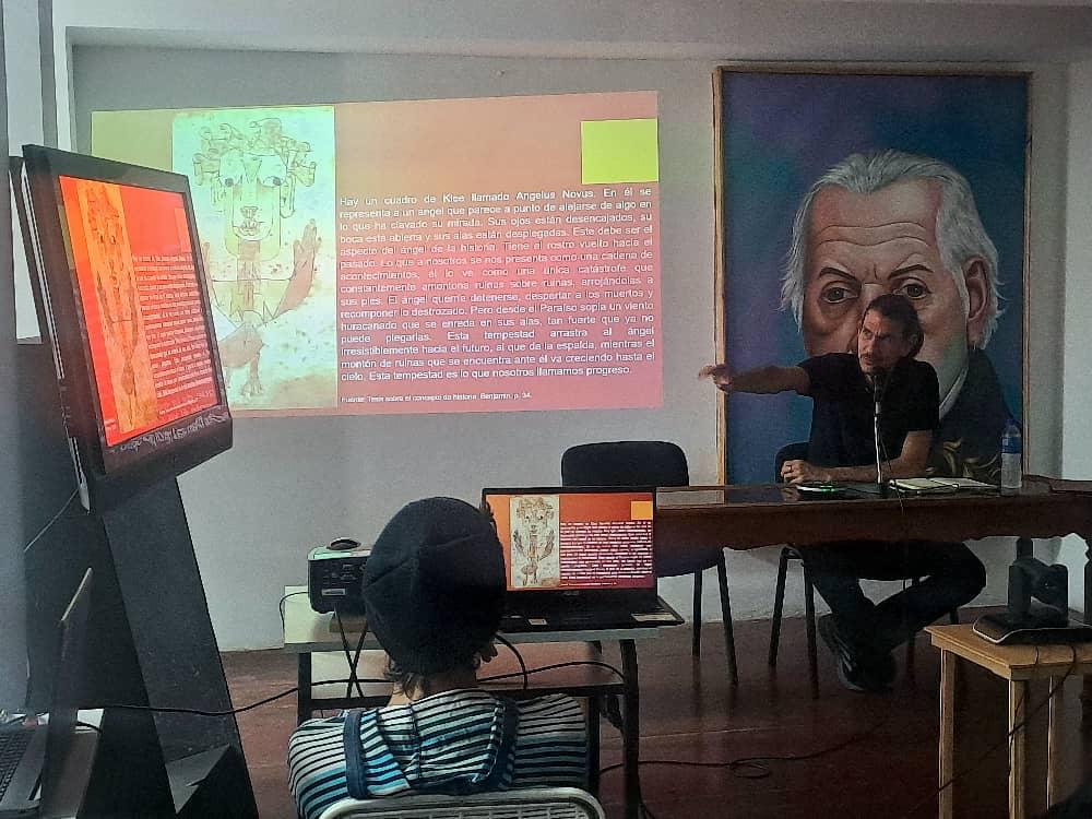 Caracas, 06 de noviembre de 2025 (Prensa CNEH)- El Centro Nacional de Estudios Históricos (CNEH), continúa el ciclo de charlas referentes a la Geopolítica para la Paz. En esta oportunidad, el profesor Ramón Moreno García, conversó sobre el proceso histórico de la Revolución Bolivariana, que comienza desde la época de la colonización, cuando nuestros pueblos originarios fueron condenados por ejercer resistencia contra el imperio español. Este seminario fue llevado a cabo en el piso 02 del Complejo Histórico Cultural Casa del Bicentenario, ubicada en la Avenida Universidad, en el horario comprendido entre 09.30 am hasta las 12.00 pm. Por su parte, el profesor comenzó su charla efectuando un análisis dialéctico histórico de los pueblos originarios. Destacó que, el pueblo indígena tenía características y valores éticos que siguen vigentes dentro del sentimiento patrio, puesto que siempre ha sido un pueblo trabajador, solidario, amante del territorio y de sus procesos productivos. El ejército invasor español, arribó a nuestro continente en medio de una crisis económica, política y social, para confrontar la incorporación de España a la Revolución Industrial y al precapitalismo. Los españoles se dieron a la tarea de usurpar tierras, saquear riquezas, imponer su cultura por medio de la guerra, tal como ocurre actualmente con el imperio. El pueblo venezolano siempre ha sido acosado por proteger sus soberanía. Debemos organizarnos como pueblo para luchar contra el imperio tal cual lo hicieron nuestros aborígenes contra el imperio español. Venezuela, siempre lucha por la paz, ese es nuestro legado, nuestra historia y de eso debemos estar orgullosos.