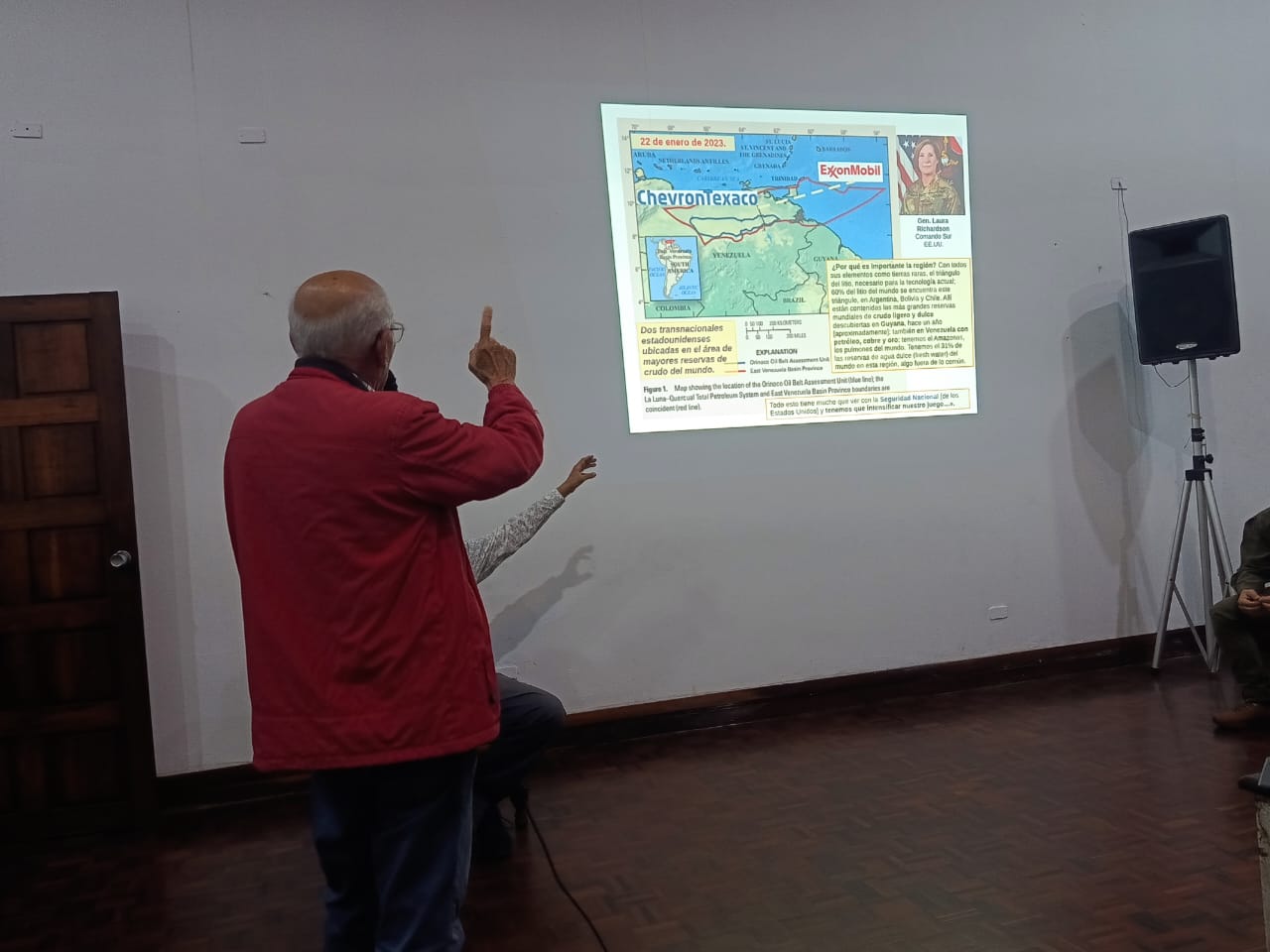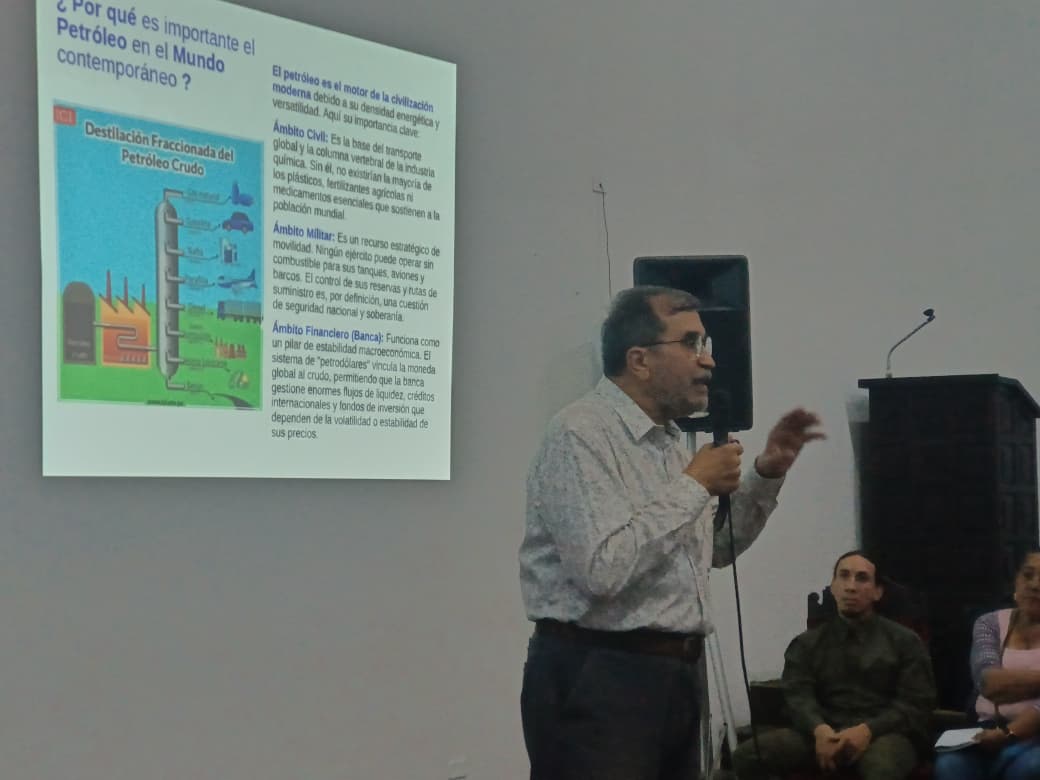 – Las ​Compañías Petroleras vs. Soberanía: El ponente explicó la pugna histórica entre las transnacionales y la defensa de los recursos por parte del Estado, subrayando que «Venezuela es la corona» de los recursos estratégicos en la región, lo que explica por qué las amenazas externas son permanentes.