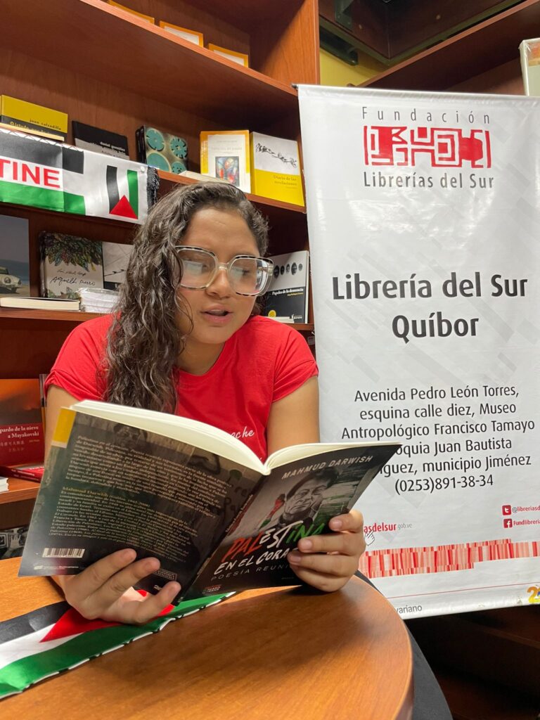 Caracas, 7 de noviembre Prensa (CNEH)- Durante el pasado jueves, en la Librería del Sur, con sede en el Museo Antropológico de Quíbor Francisco Tamayo Yepes (MAQ), tuvo lugar una sesión de lectura, con el propósito de homenajear al pueblo palestino por medio de la palabra.