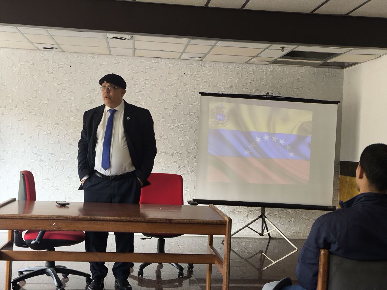Durante su intervención, el profesor Rojas Olaya destacó la importancia de analizar la coyuntura internacional desde una perspectiva bolivariana, haciendo especial énfasis en los acontecimientos del pasado 3 de enero de 2026.